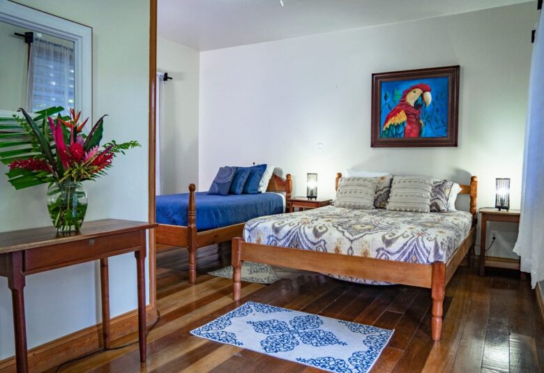 Escape to your private jungle retreat in our Detached Cottage, a stand-alone unit designed for ultimate privacy and relaxation. Perfect for couples or a small family, this cottage comfortably sleeps 2-3 adults with two double beds.