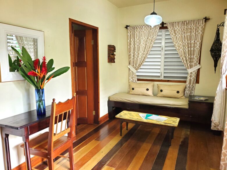 Our Sweet Suite (“The Sweet”) offers something a little more special for couples. Originally built as the Hickatee Founder’s home, the Sweet Suite is the largest and most private of our cottages, with a large verandah for enjoying a hammock and porch chairs, as well as a small deck at the back of the house surrounded by the jungle setting.