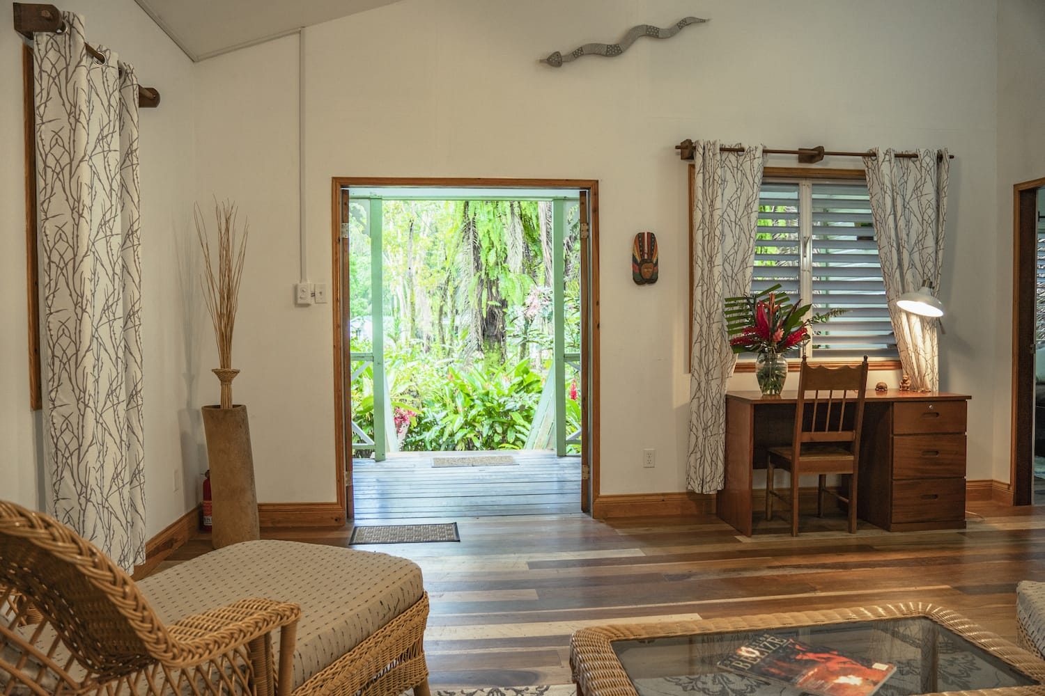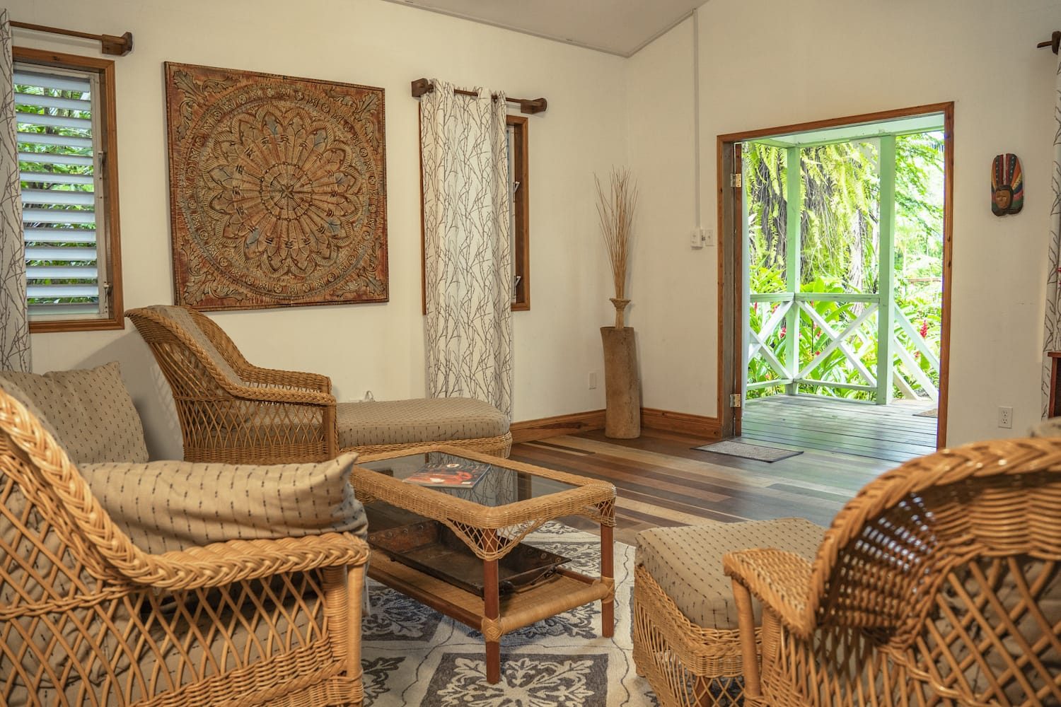 Our Sweet Suite (“The Sweet”) offers something a little more special for couples. Originally built as the Hickatee Founder’s home, the Sweet Suite is the largest and most private of our cottages, with a large verandah for enjoying a hammock and porch chairs, as well as a small deck at the back of the house surrounded by the jungle setting.